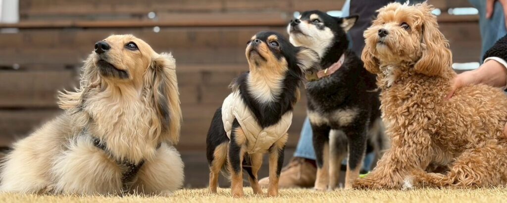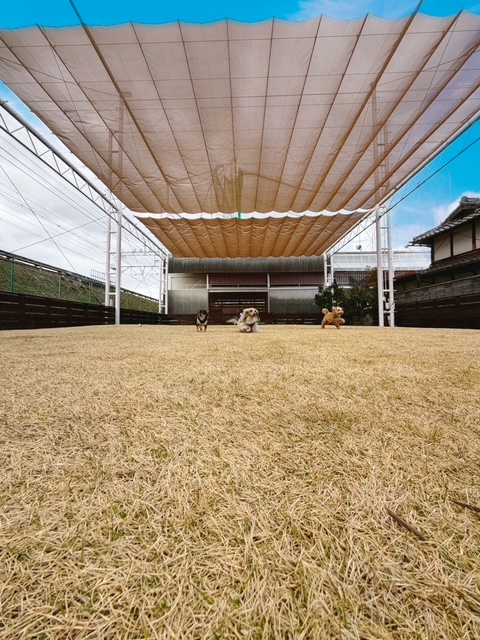 ・5頭までの少頭数制で小・中型(13㌔まで)専用。時間貸しフリードッグランは飲食禁止。蓋のできるペットボトルや水筒可能!