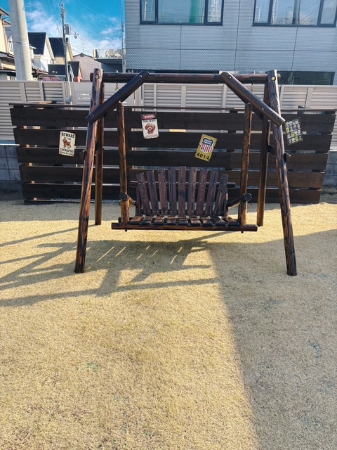 風に揺れる優しいひとときを。ゆったり過ごせる木のブランコ。愛犬と一緒にのんびりとした時間をお楽しみください。